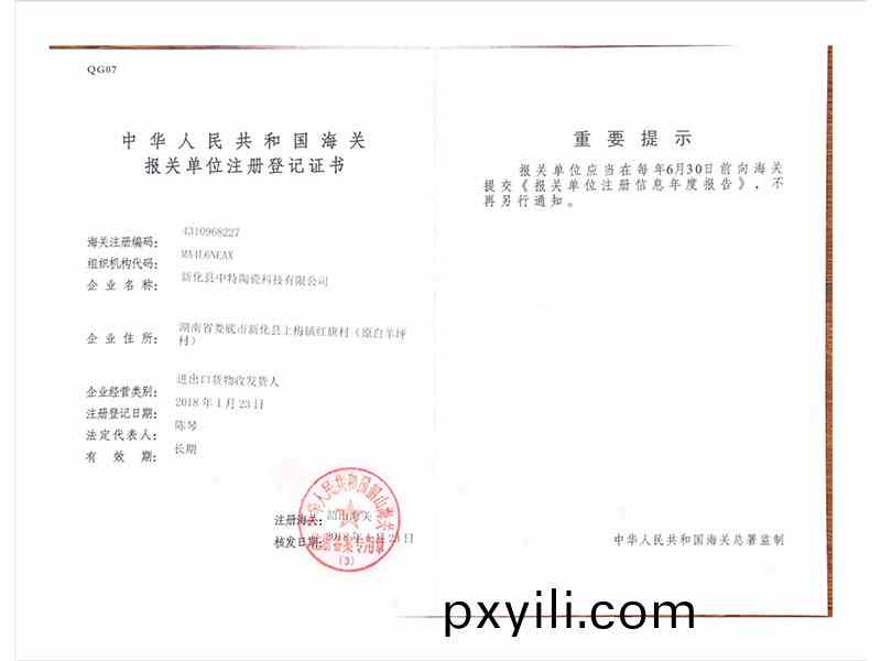 海關(guān)(guan)註(zhu)冊登(deng)記證(zheng)書(shū)